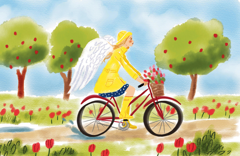 A soft breeze blew back strands of hair that had come loose from my brown ponytail. Rain was on its way again. I put my feet back on the pedals and pushed.