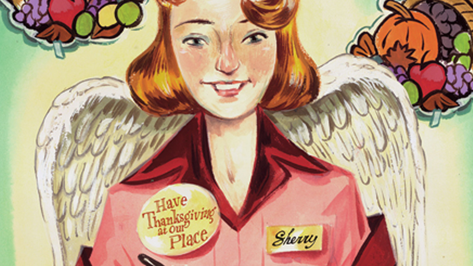 I put on my coat feeling silly—not for being at Shoney’s, but for taking so long to enjoy myself. I looked at Mom, with her big blue badge, and Sherry, the waitress who’d really helped make our Thanksgiving one to remember. If there was an angel at Shoney’s, she was it.