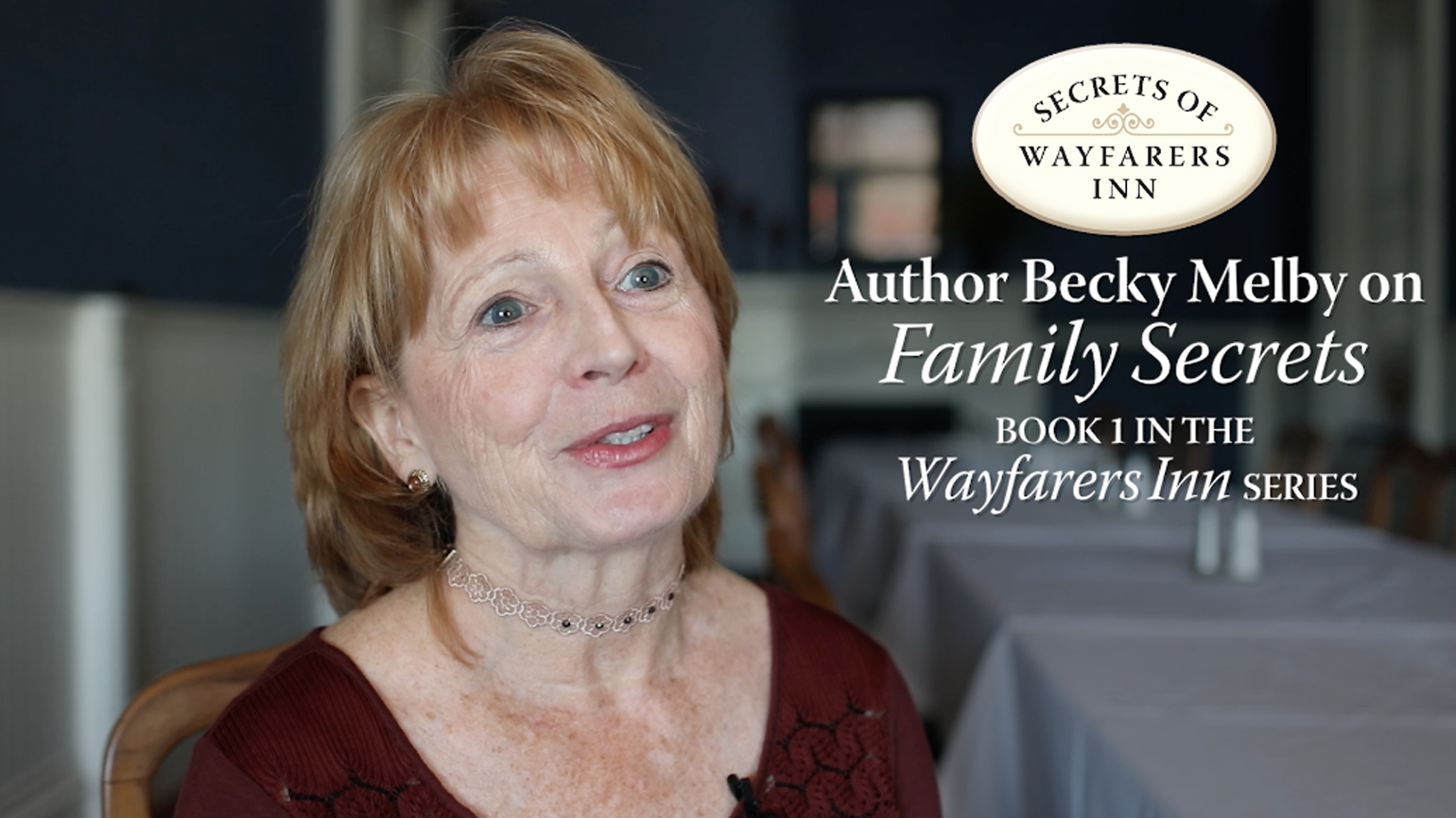 My name is Becky Melby. I live in Wisconsin. And I’m very fortunate to be writing the first book, “Family Secrets” in the Wayfarer Inn Series. My book– our characters have just found the inn. It’s in pretty bad condition. They’re trying to buy it, but someone’s trying to stop them. Someone or something is trying to stop them.