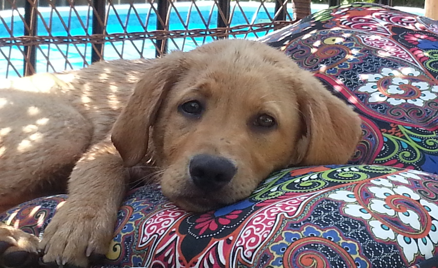 He has his football in his mouth and he’s looking at me with remember-me-mama eyes. I scratch his ears and hope this will be enough. But the pup has something else in mind. He wants to play.