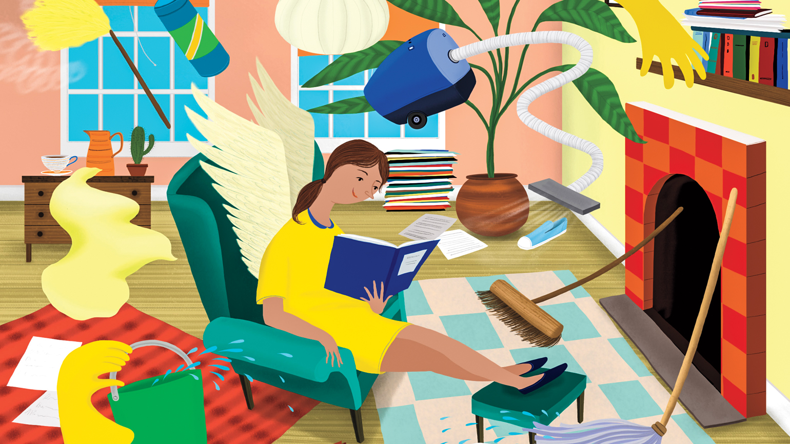 Stacks of magazines and newspapers, empty cardboard boxes, half-filled trash bags of clothes to be given away. Junk…