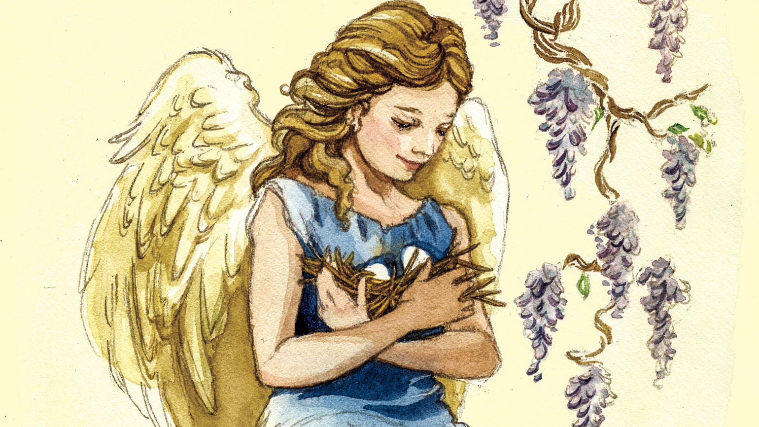 “Look!” I said to my husband, Roger, pointing to the budding purple wisteria branches. “The mourning doves have…
